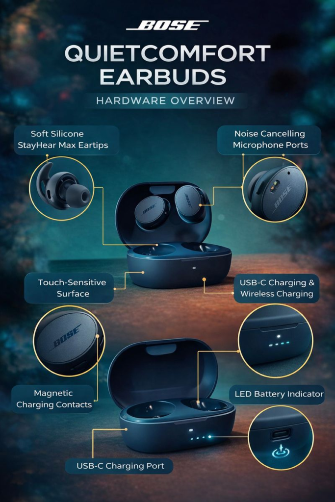 The true wireless earbud market is crowded with options, but only a few products genuinely redefine user expectations. The Bose QuietComfort Earbuds belong firmly in that elite category. Designed for listeners who prioritize powerful noise cancellation, premium sound quality, and all-day comfort, these earbuds reflect Bose’s long-standing expertise in acoustic engineering. Rather than chasing flashy trends, Bose focuses on refining the essentials that matter most to serious listeners.