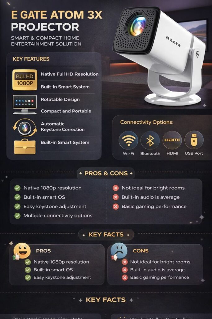 Home entertainment has evolved beyond traditional televisions. People now want flexible, space-saving, and smart solutions that deliver a cinematic experience without complex installations. Smart projectors have become a popular choice for this reason, and among them, the Atom 3X by E Gate has gained strong attention.