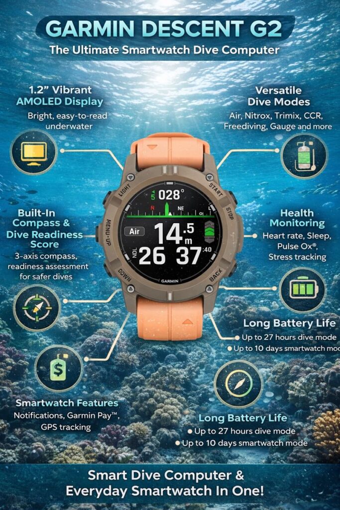 For divers who want a premium dive computer that also works as a daily smartwatch, the Descent G2 is a dependable and future-ready choice.