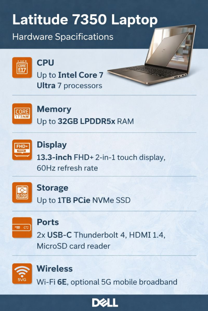 The Latitude 7350 Laptop represents Dell’s refined vision of what a modern business laptop should be—portable, secure, powerful, and intelligently designed for today’s hybrid work culture. Built for professionals who demand reliability without sacrificing style, this device blends premium craftsmanship with enterprise-grade performance. Whether you are a corporate executive, consultant, or frequent traveler, the Latitude 7350 Laptop positions itself as a dependable productivity partner rather than just another portable computer.