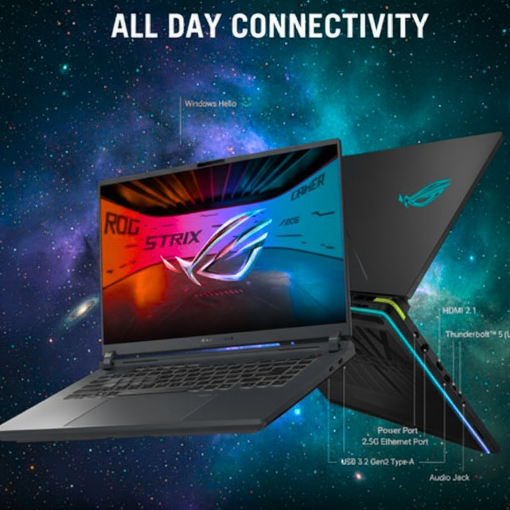 Connectivity is a strong suit of the ROG Strix G16 G615LR-S5190WS. Multiple ports allow easy connection of external displays, gaming peripherals, and storage devices. Wireless connectivity is stable and fast, ensuring low-latency online gaming and smooth streaming.