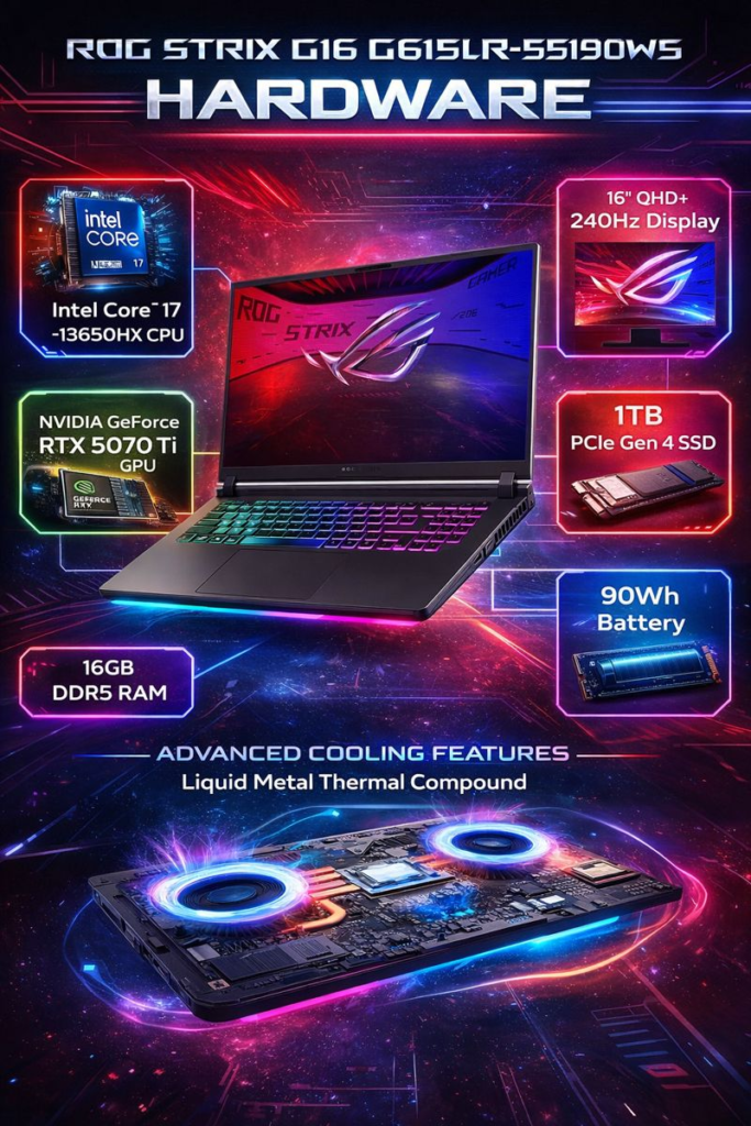Gaming laptops today must deliver more than raw power. They need efficient cooling, immersive displays, and long-term reliability. The ROG Strix G16 G615LR-S5190WS is engineered with these exact goals in mind. Designed under the ROG lineup, this model targets users who demand top-tier performance without compromising on build quality or usability.