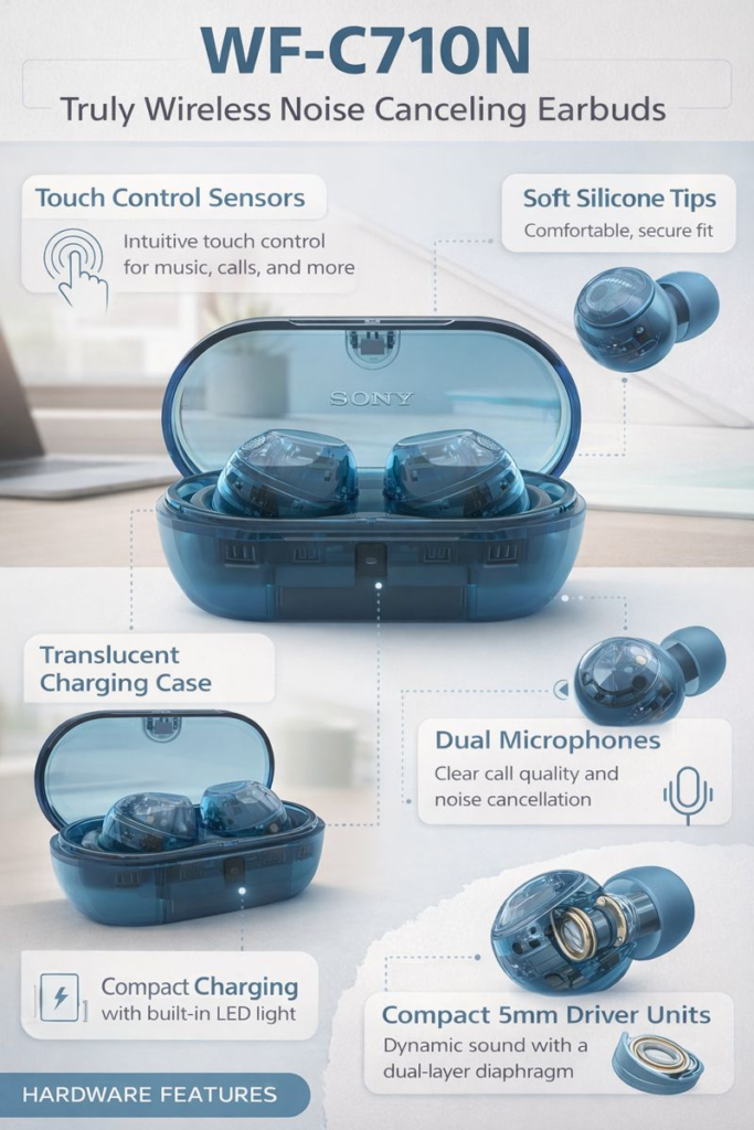 The market for wireless earbuds is crowded, but only a few products manage to balance sound quality, comfort, battery life, and effective noise cancellation without pushing users into premium price territory. The WF-C710N Truly Wireless Noise Canceling Earbuds stand out as a thoughtfully engineered option aimed at listeners who value reliability, clarity, and practical features for everyday use.