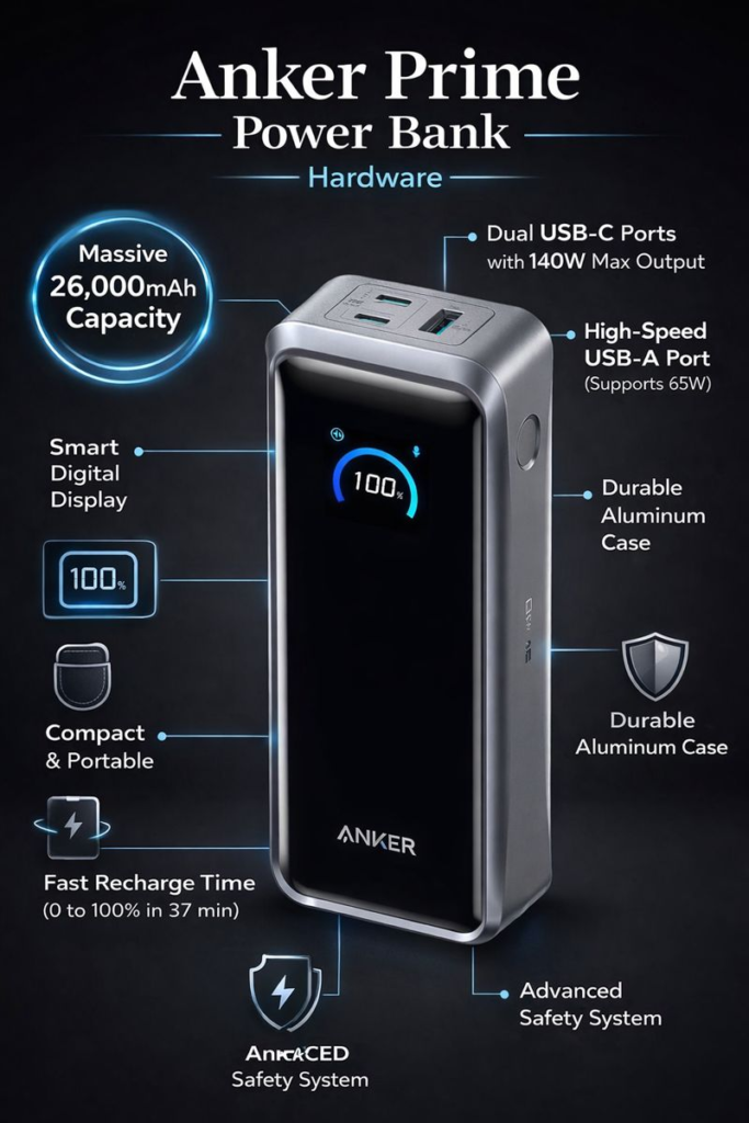 The Anker Prime Power Bank is not just a portable charger; it is a mobile power station engineered for demanding modern lifestyles. Its combination of capacity, speed, safety, and premium design makes it one of the most capable power banks available today.